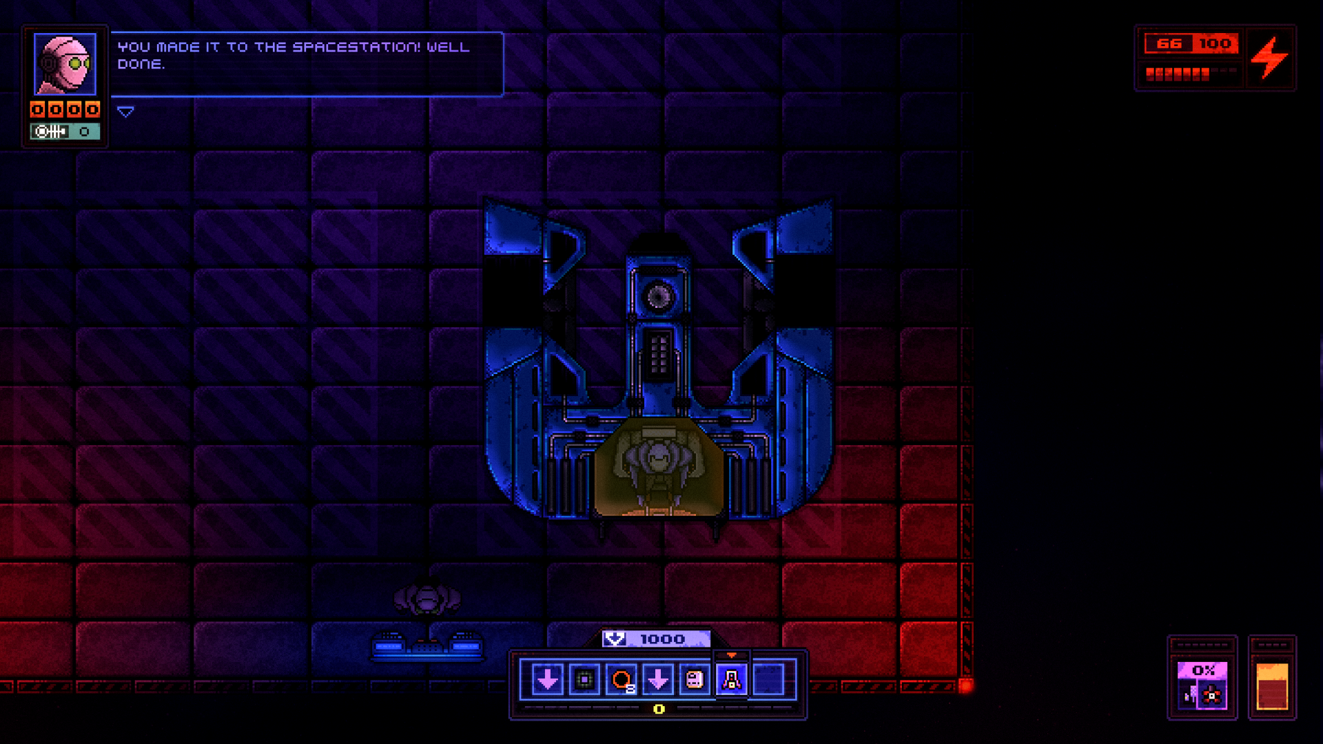 Every move, damage taken, and weapon overuse causes energy to deplete. Gain it back by eliminating enemies, and reaching the next dock.
